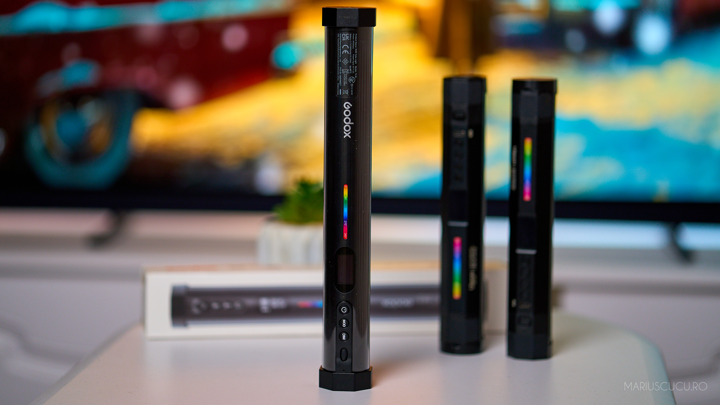 - integrarea în ecosistemul Godox: adică o să le pot porni simultan, prin Bluetooth. E țeapă, nu pot porni direct, doar să controlez culoarea și celelalte setări, dar după ce deja sunt pornite