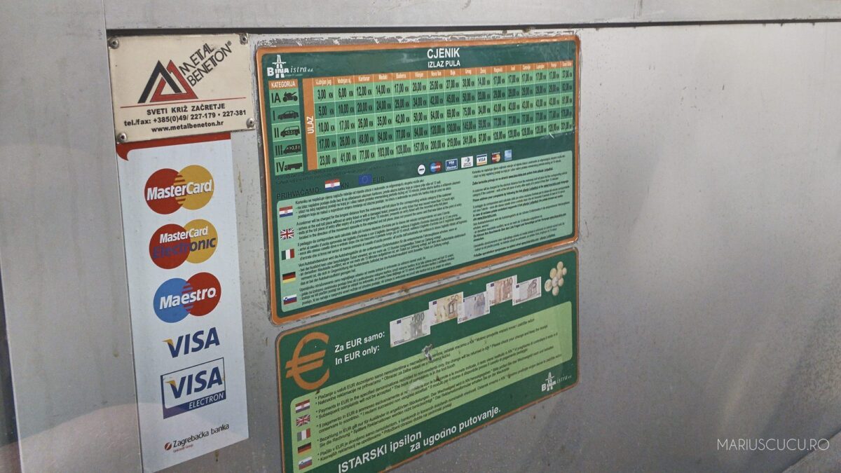 În Franța am avut noroc că am avut ceva carduri d-ale lor și am avut prețuri ok, în Croația, însă, un drum până la Pula, din Split, adică undeva la 400-500 de km ne-a dus undeva la 60 de euro. Prima autostradă a fost super din toate punctele de vedere, a 2 a parcă avea regim de drum național, dar ce să faci? Nu poți să le ai pe toate. Ce să vezi, plătești și pentru acel drum.