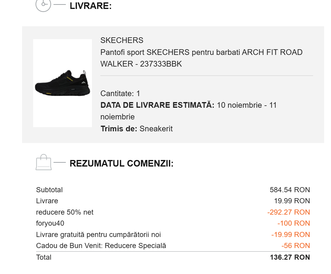 Pont: faceți cont nou aici și voucher Foryou40. Ar trebui să fie discount. Adidașii ăștia i-am luat cu 136.27. Din ce am văzut, merge doar de pe telefon. Dacă aveți deja cont la ei… trebuie număr nou de telefon.