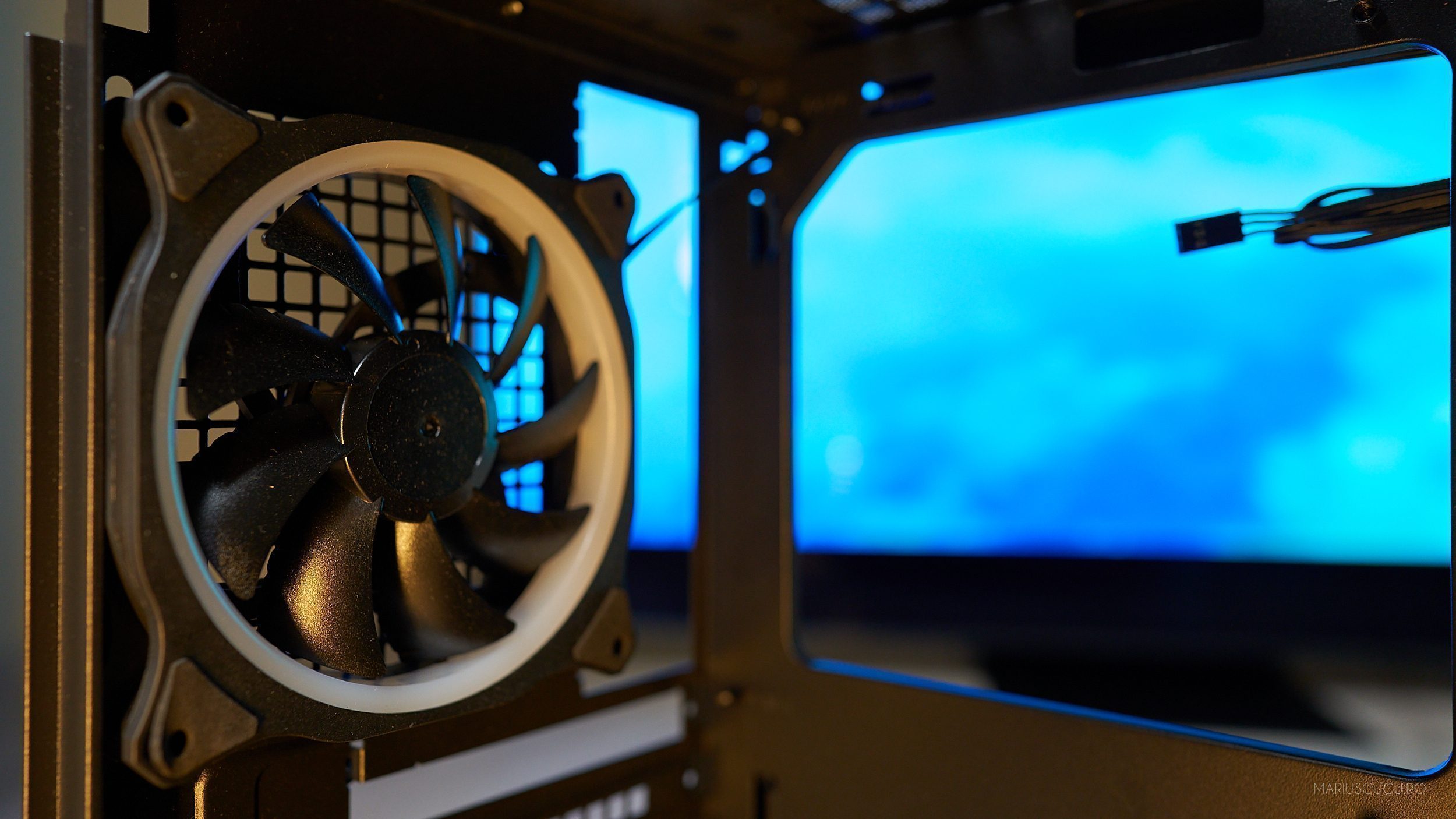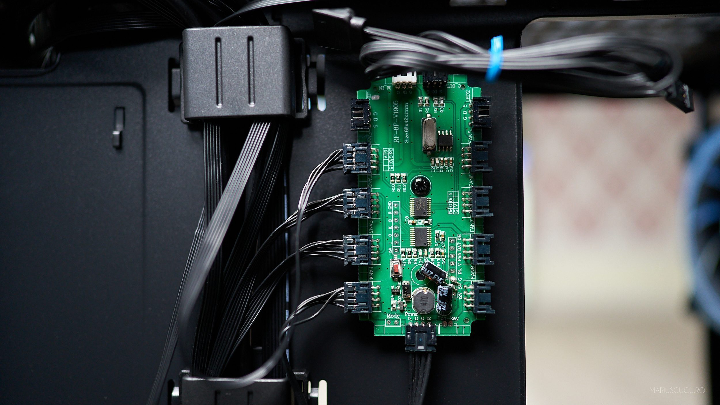 Mă așteptam să am probleme cu ventilatoarele și conectarea lor. Am conectat molex de la sursa de alimentare și asta a fost. Neașteptat de rapid. Apoi le-am controlat de pe telecomandă. Mult mai mulți nervi mi-a făcut placa de bază pentru că erau conectorii de power îngrămădiți și pur și simplu am luat la nimereală. N-a mers nici cu poză, nici cu lumină extra. Probabil ne trebuia un obiectiv macro.