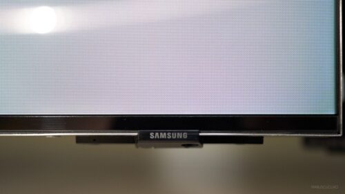 În partea de jos a televizorului avem logo-ul. Cu siguranță mi-ar fi fost util obiectivul macro pentru a-l poza. Cu ochiul liber nu îți dai seama că este logo acolo decât dacă te uiți foarte atent. Jos pălăria pentru asta. Vreau experiență de vizionare, nu vreau să văd logo sau leduri aprinse.