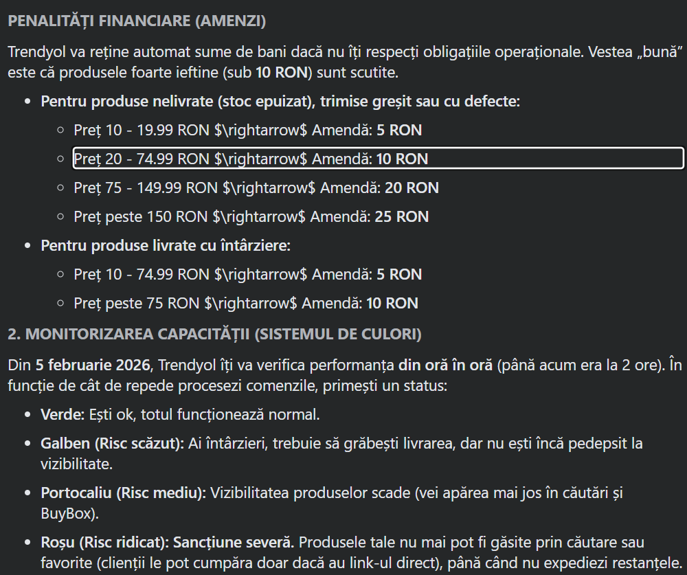 Revenind la turci aka chinezi. Au început să facă niște grile de penalizări pentru magazinele care vând pe platformă și nu sunt eficiente. Cam așa: