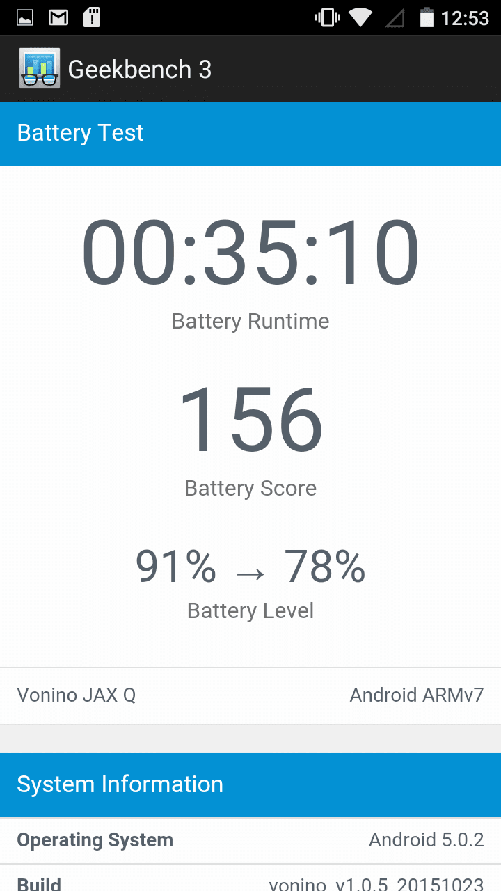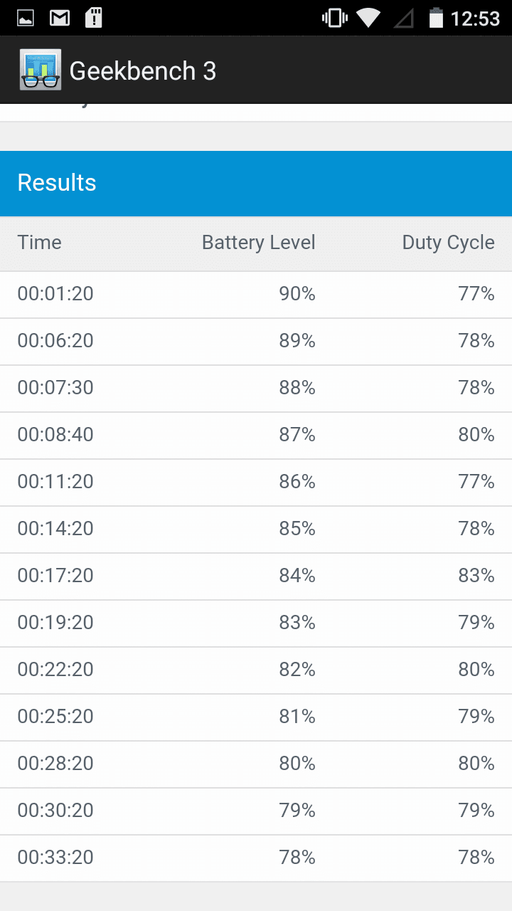 În jumătate de oră de teste cu Geekbench 3 am scăzut de la 91% la 78%. Teste de performanță sunt mai jos.